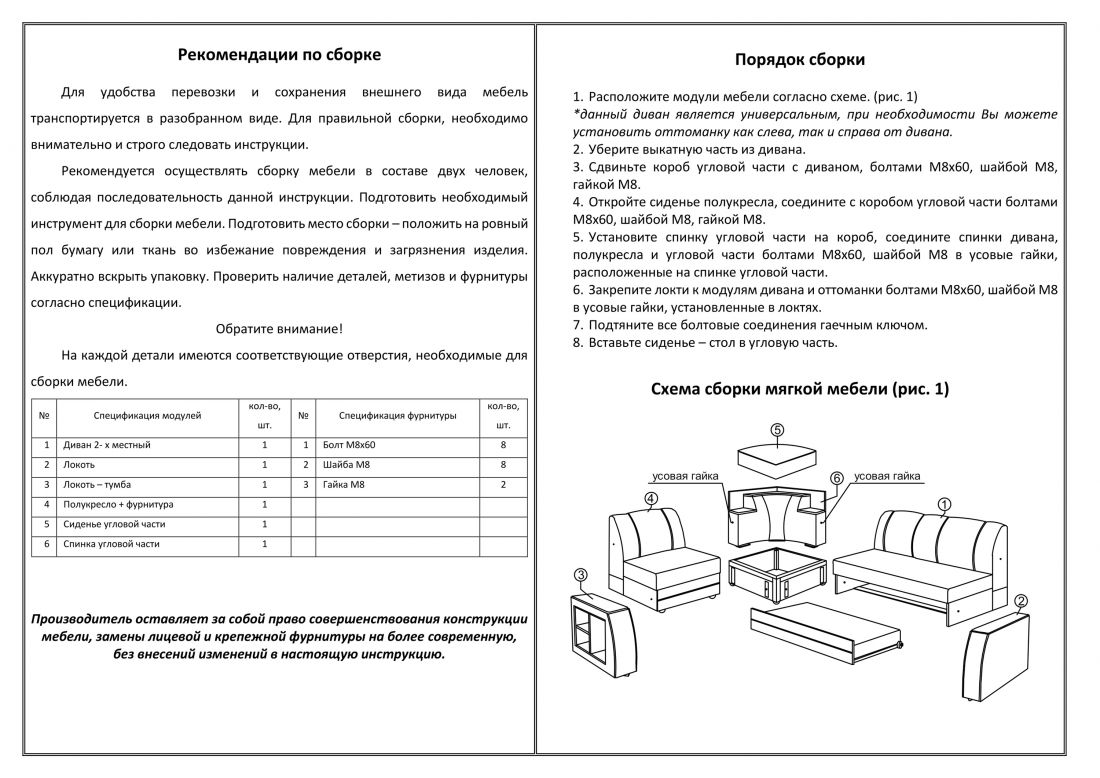 Варианты углового исполнения: универсальный.